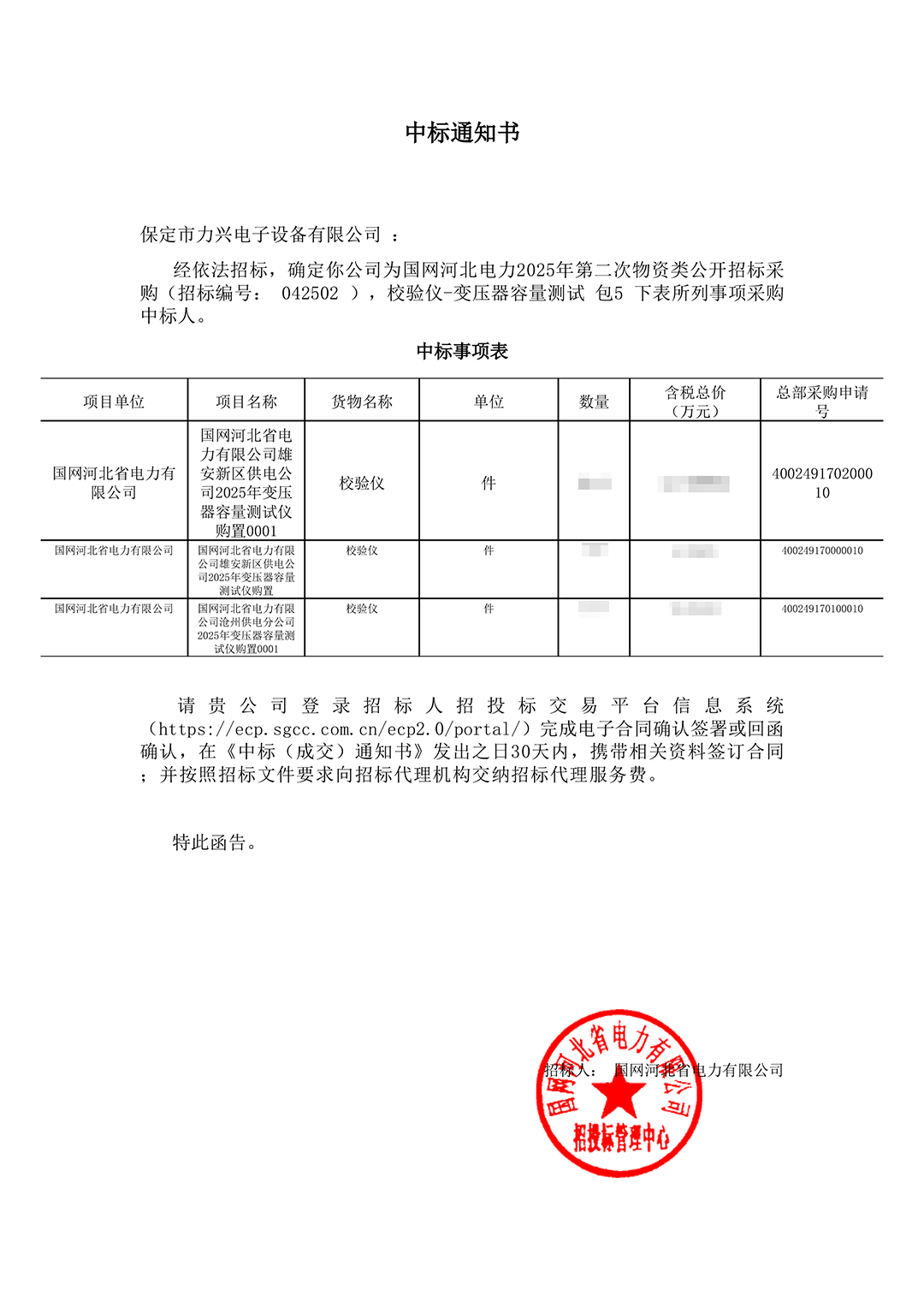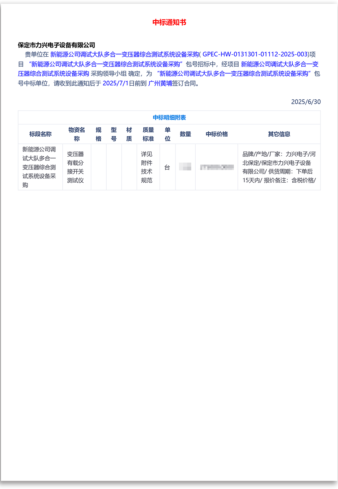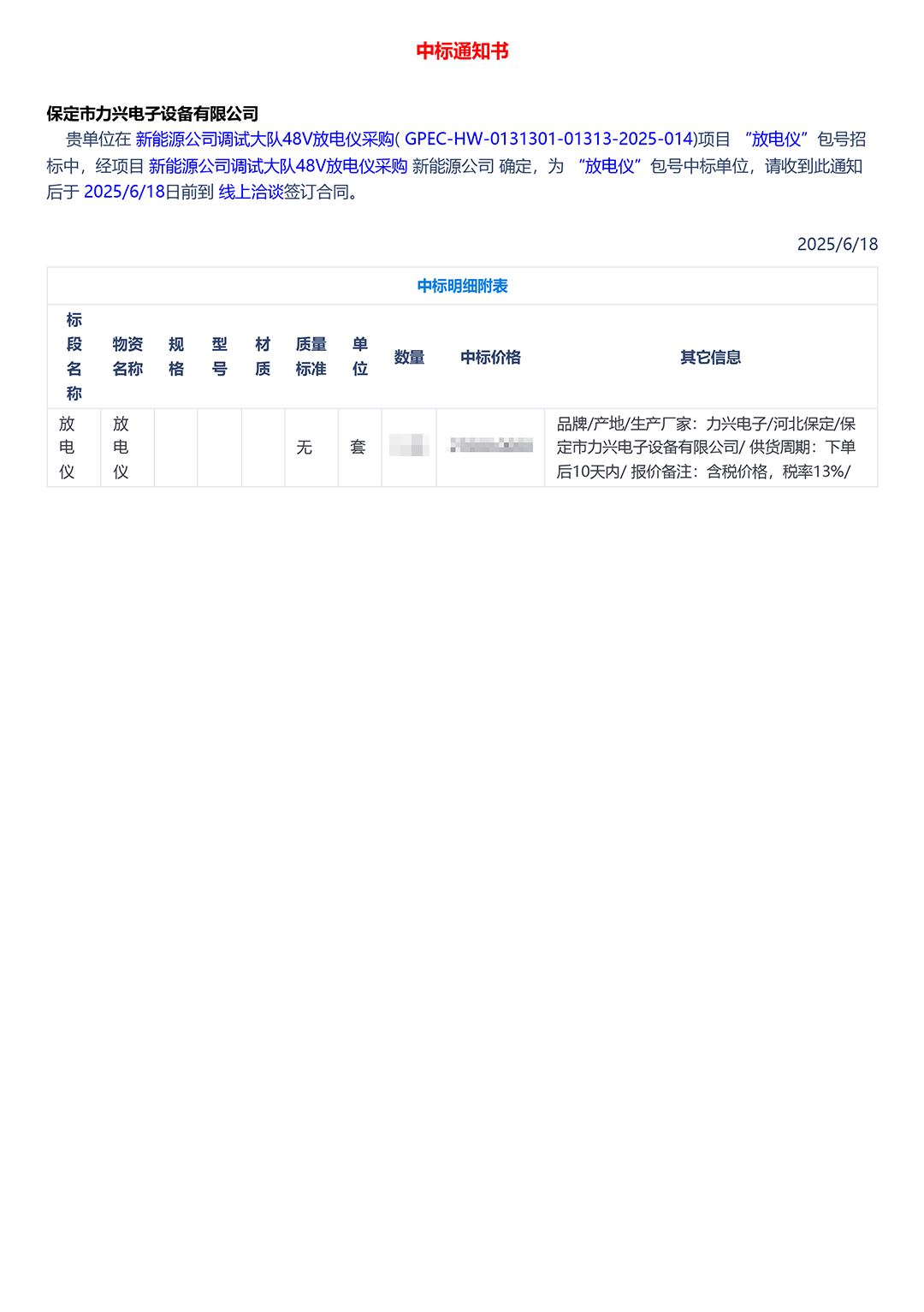 保定市力興電子設備有限公司第二季度中標通知如下展示,我們將團結一致,再接再厲,迎接已經到來的第三季度。