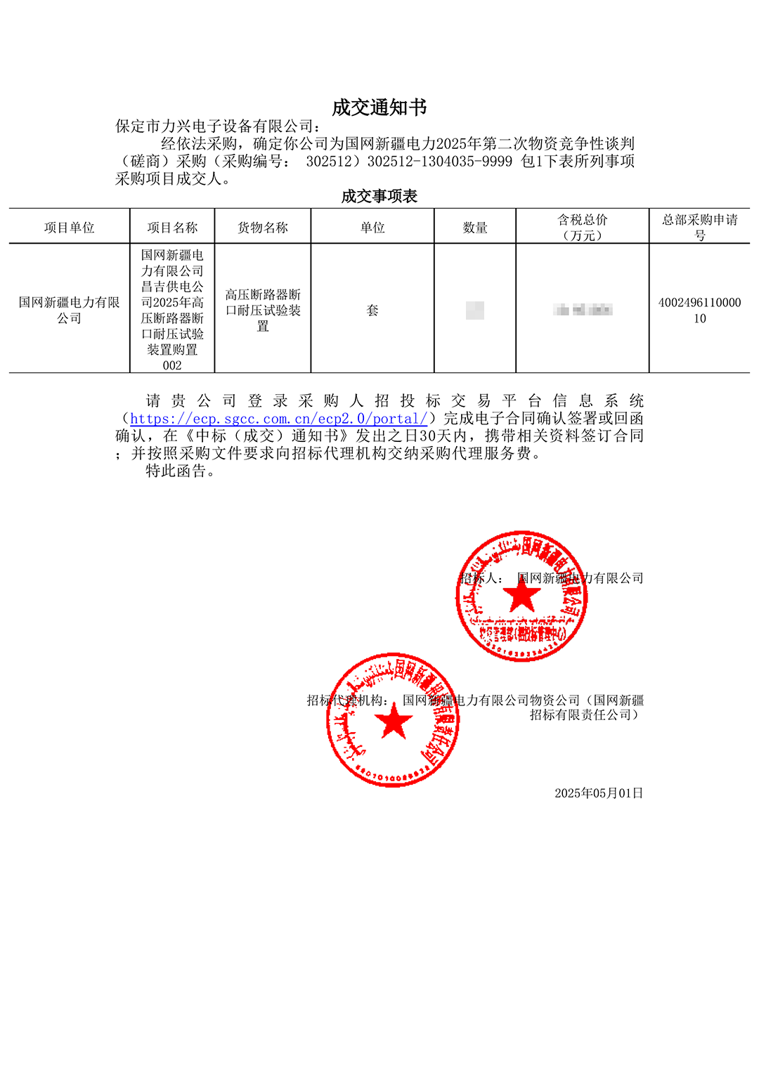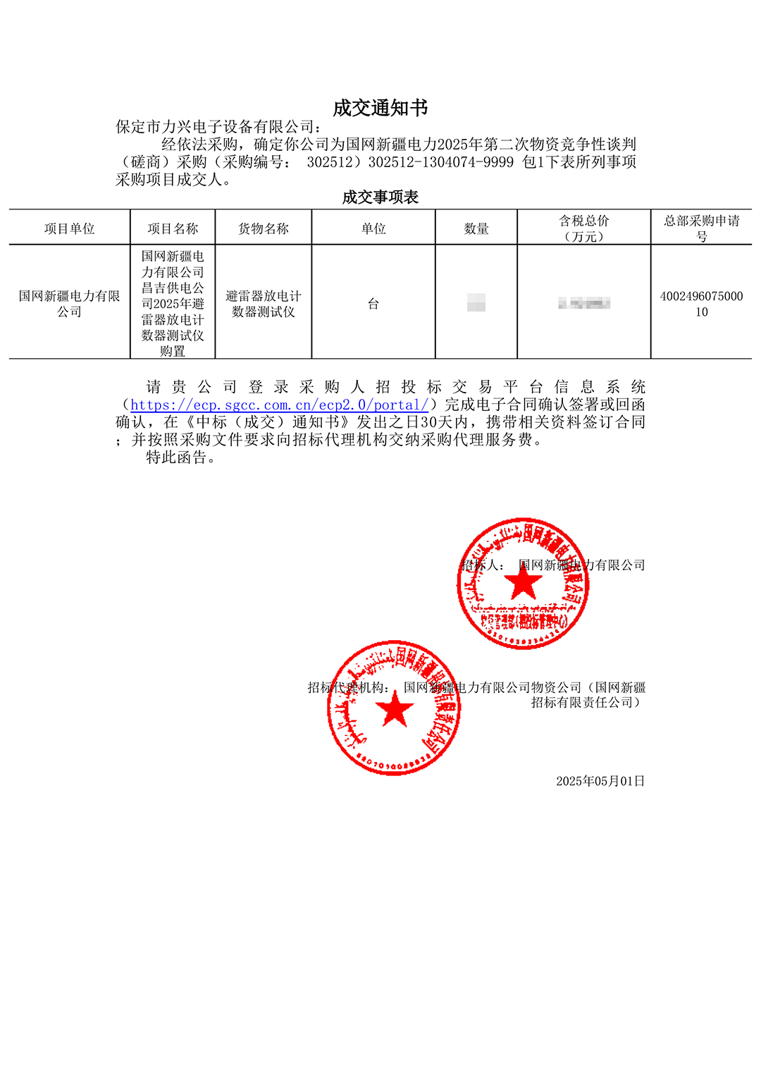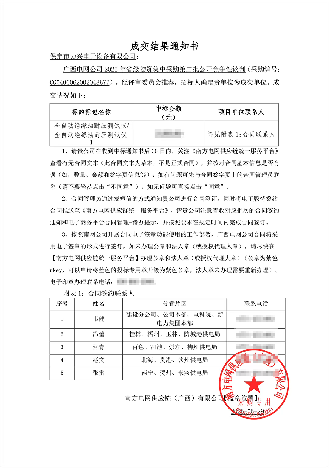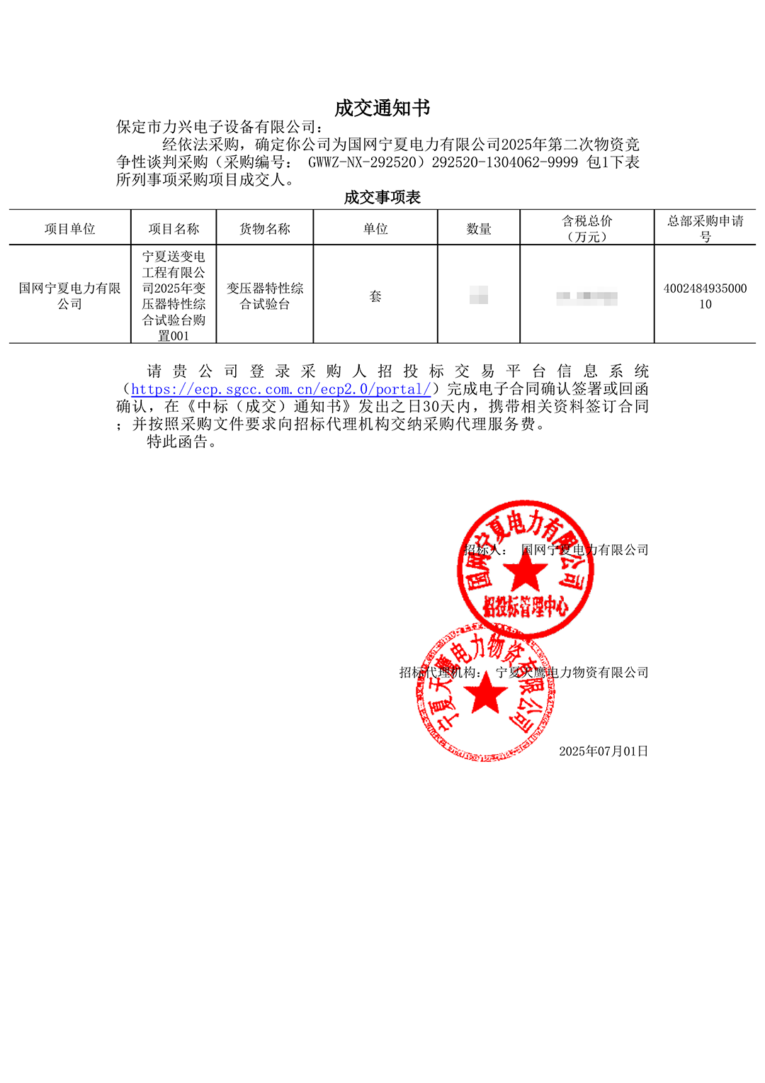 保定市力興電子設備有限公司第二季度中標通知如下展示,我們將團結一致,再接再厲,迎接已經到來的第三季度。