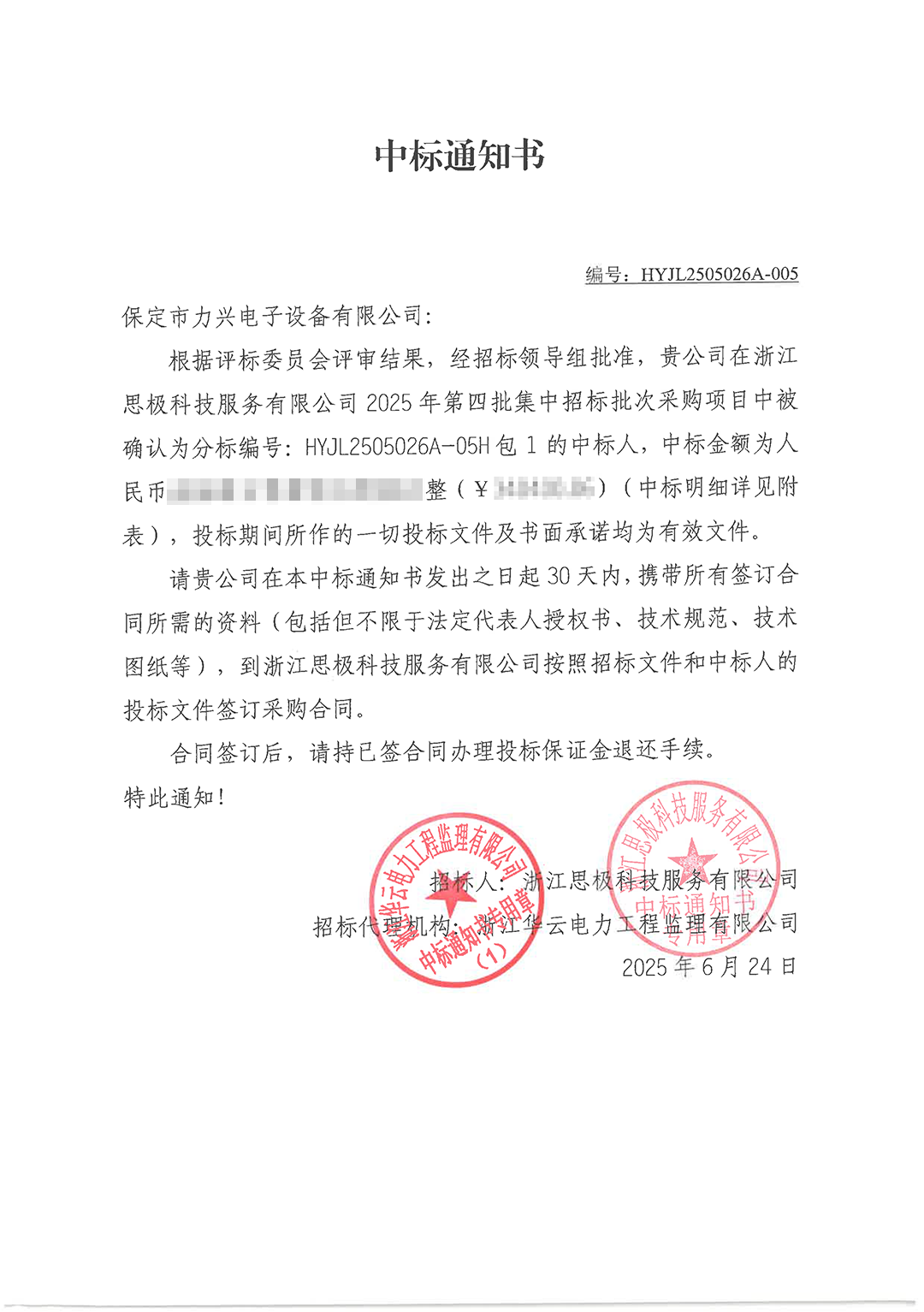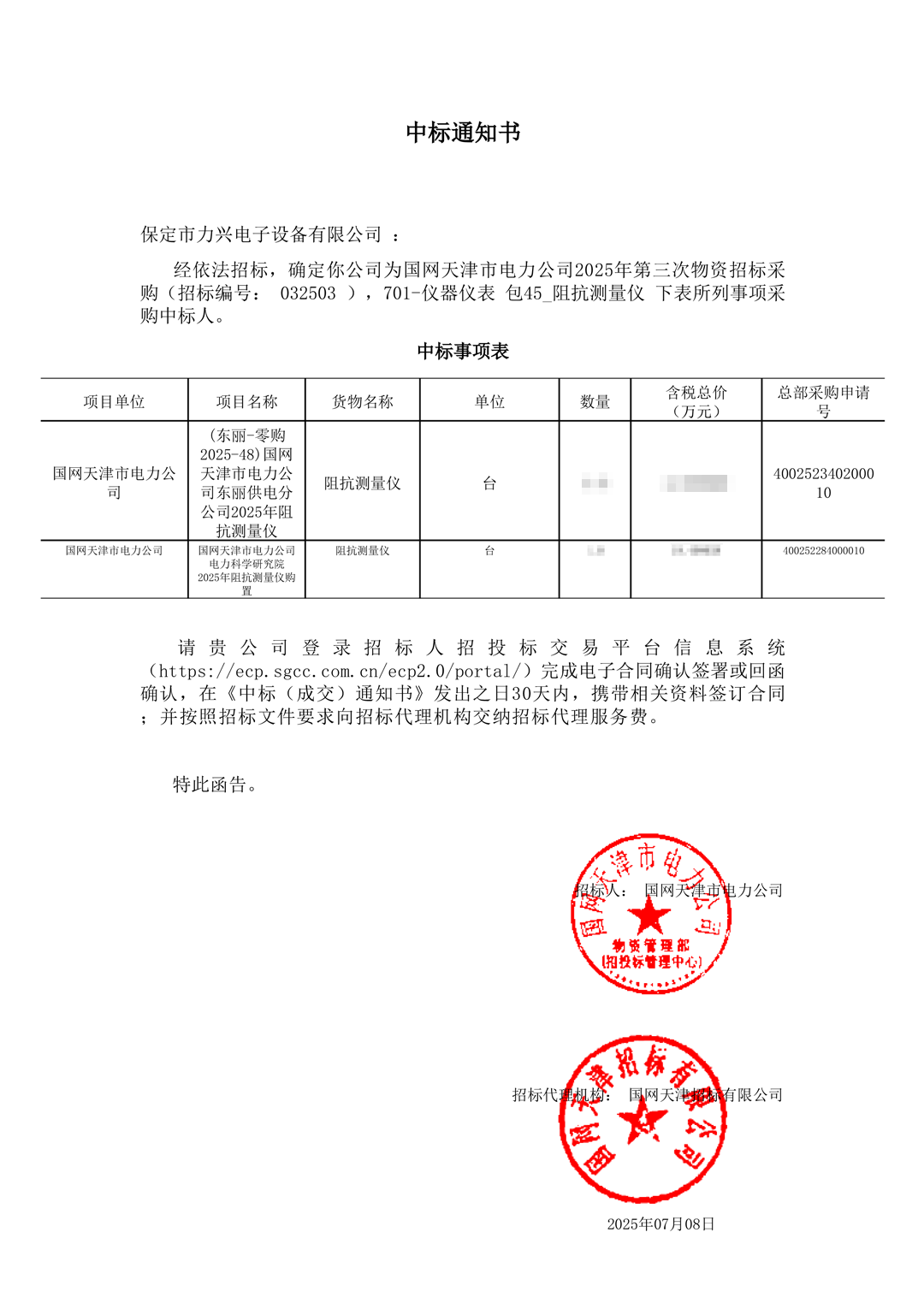 保定市力興電子設備有限公司第二季度中標通知如下展示,我們將團結一致,再接再厲,迎接已經到來的第三季度。